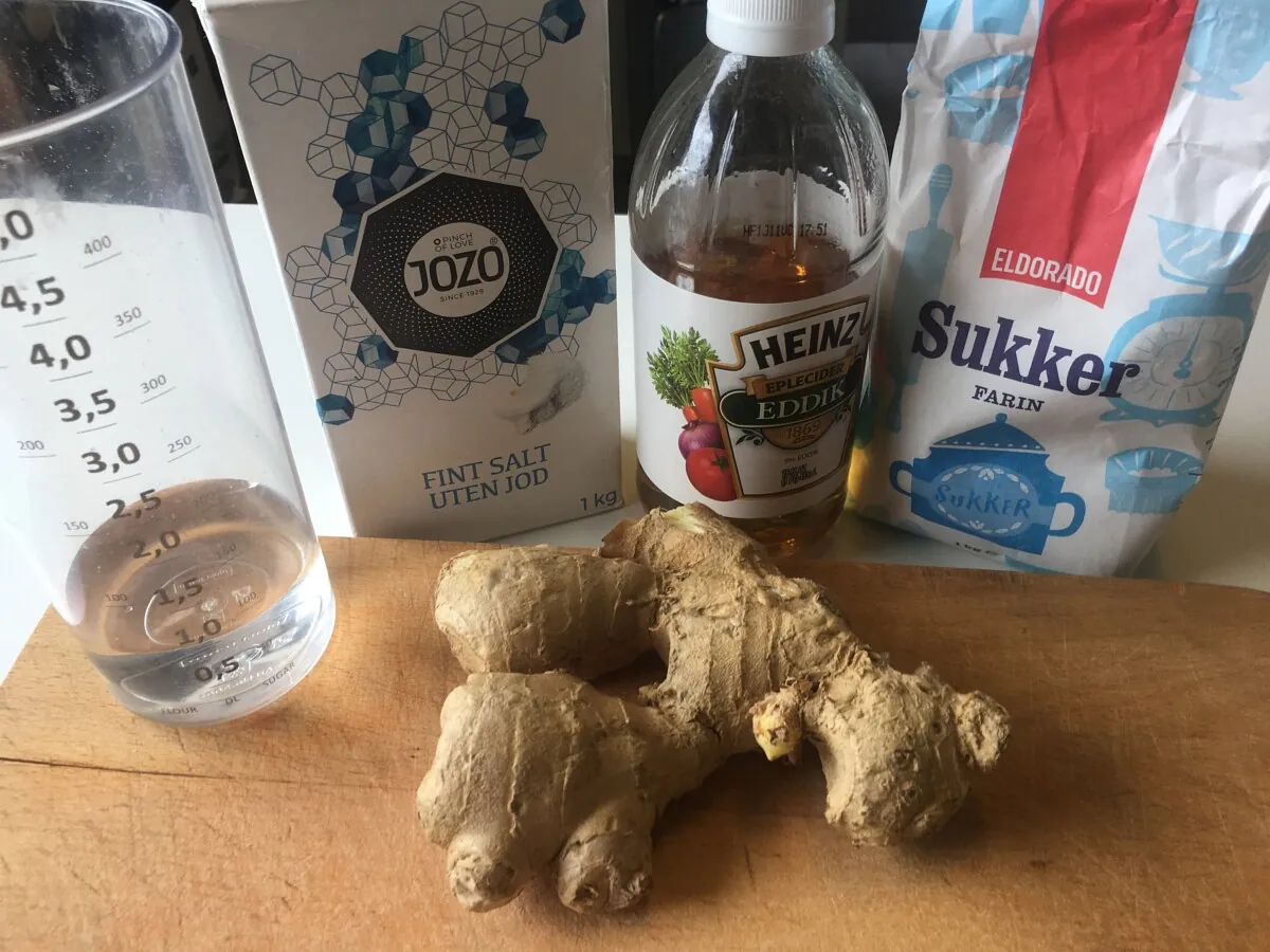 Enkel oppskrift på hjemmelaget syltet ingefær. Syltet ingefær smaker best hjemmelaget, men husk å lag i god tid før den skal nytes. Syre- og sødmeforholdet i laken kan justeres etter egen smak. Riseddik kan byttes ut med eplesidereddik, eller du kan erstatte deler av eddiken med sitron- eller limesaft.